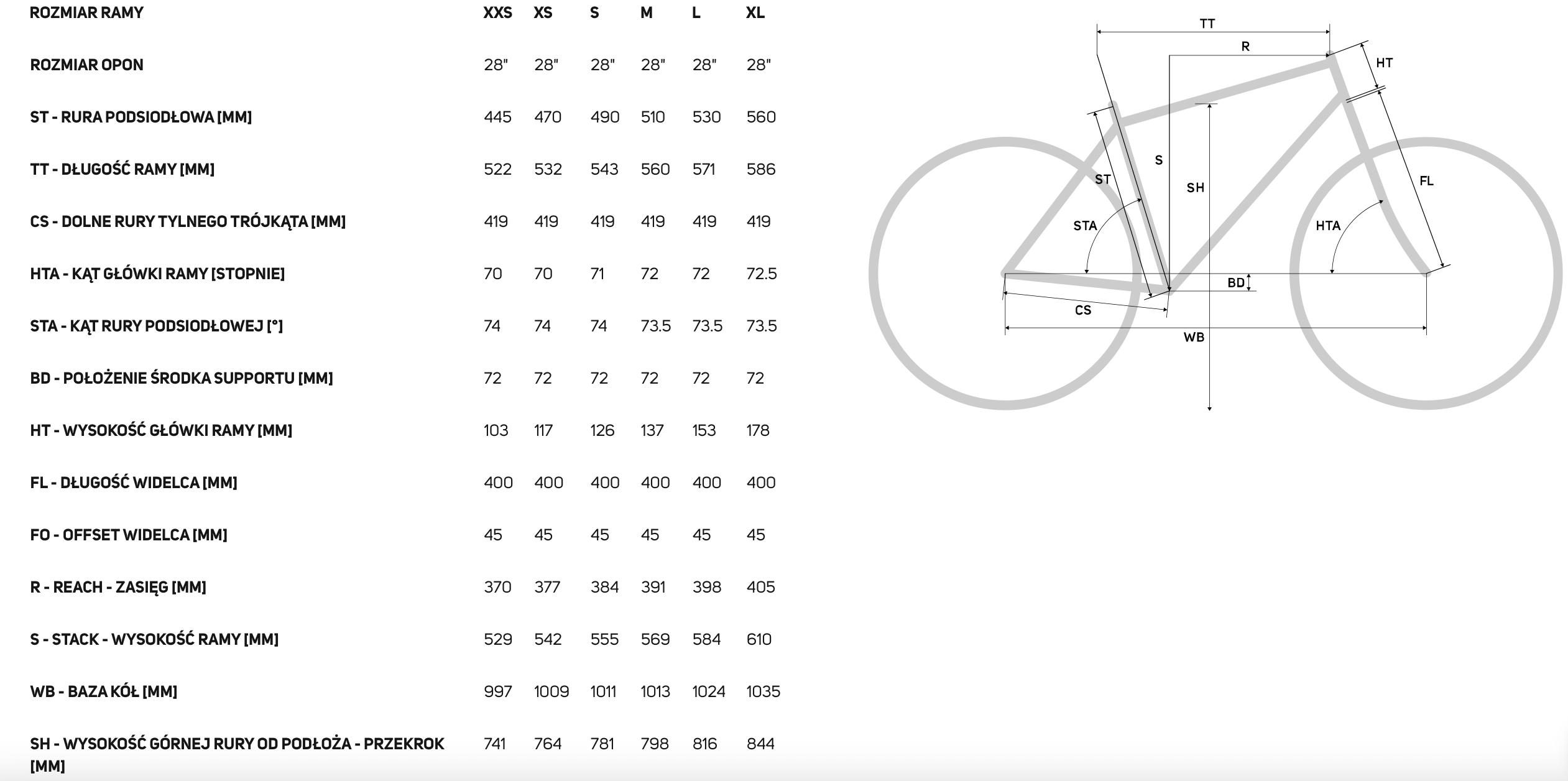 Hydrauliczne hamulce tarczowe Shimano STRX410 z tarczami Shimano RT54 160 mm zapewniają skuteczną siłę hamowania w różnych warunkach. Koła Shimano WH-RX180-700C oraz opony Maxxis Receptor 700x40C łączą trwałość, niskie opory toczenia i kontrolę na zróżnicowanej nawierzchni.