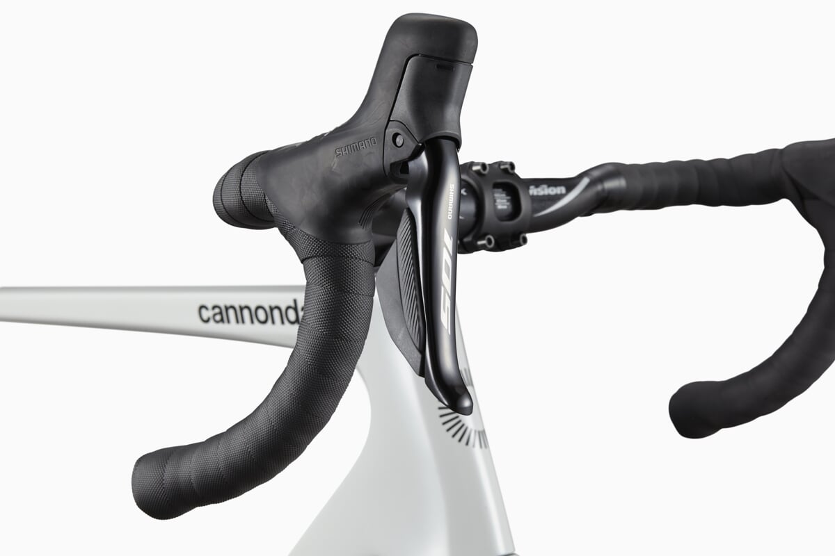 Napęd Shimano 105 Di2 2x12 zapewnia szybką i precyzyjną elektroniczną zmianę biegów, a hydrauliczne hamulce tarczowe Shimano 105 zwiększają kontrolę i bezpieczeństwo w różnych warunkach pogodowych. Koła DT Swiss R470 db z oponami Vittoria Rubino Pro oraz aerodynamiczna kierownica Vision Trimax Aero w połączeniu ze wspornikiem Cannondale C1 Conceal tworzą nowoczesny, dopracowany kokpit o sportowym charakterze. Całość daje rower, który został stworzony z myślą o szybkiej jeździe bez kompromisów.
