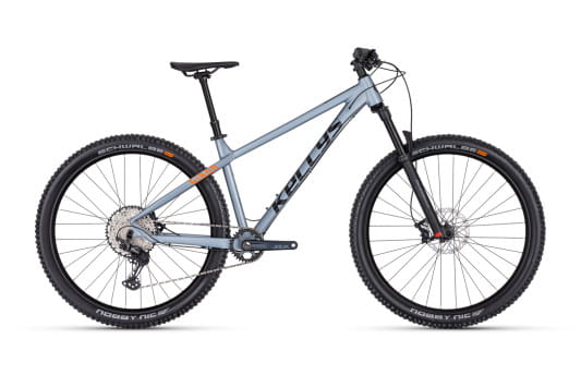 Napęd SHIMANO Deore XT / SLX 1x12 zapewnia precyzję zmiany biegów i szeroki zakres przełożeń (10-51T), a mocne hydrauliczne hamulce SHIMANO SLX M7100 gwarantują pełną kontrolę w trudnym terenie. Dzięki oponom SCHWALBE Nobby Nic Evo Super Trail 2.35” i szerokim obręczom KLS Valor 3 Disc 30 mm, rower oferuje doskonałą przyczepność i pewność na zakrętach.
