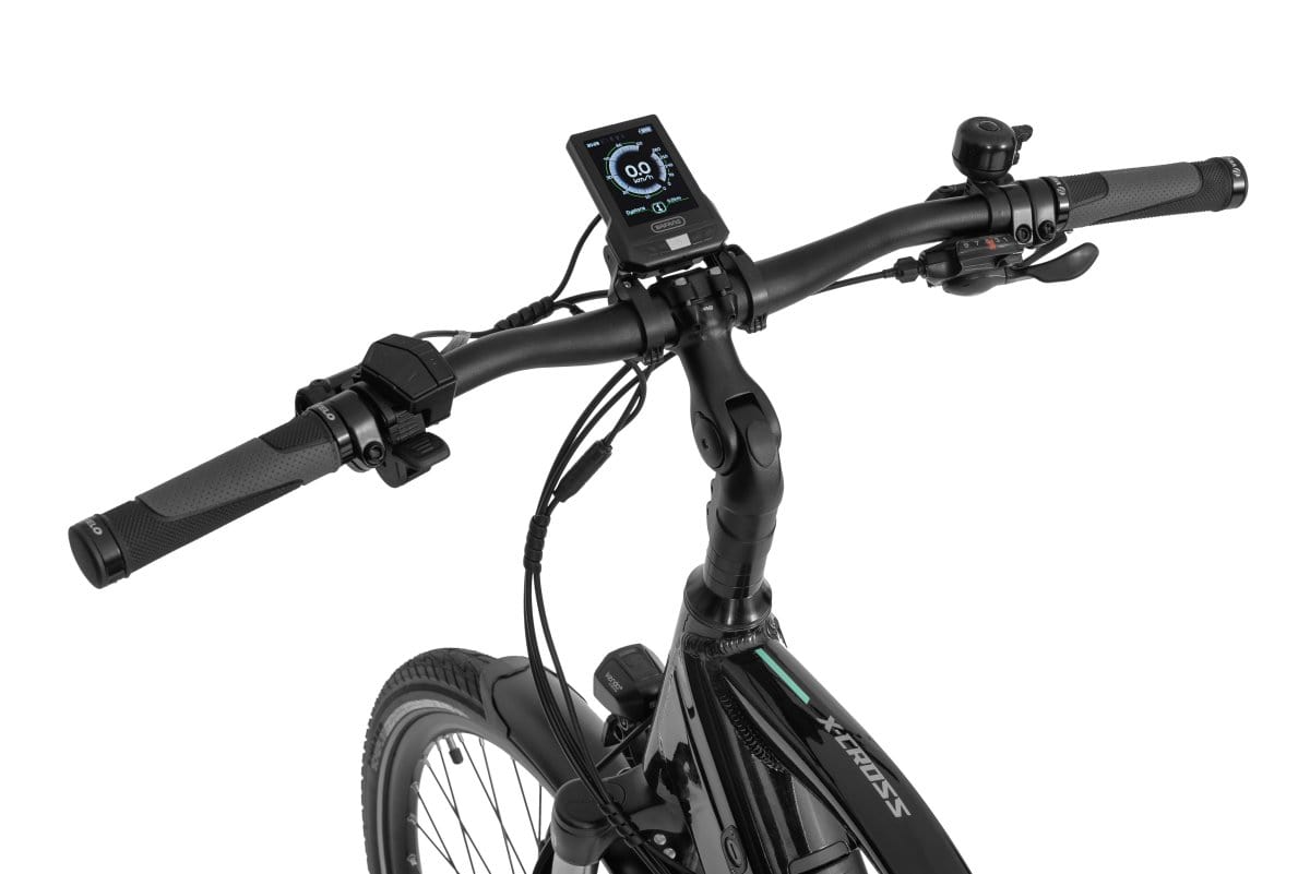 Najważniejsza zmiana dotyczy jednak systemu wspomagania. X-Cross od lat kojarzy się z niezawodnym napędem Bafang, a obecnie cały system pochodzi właśnie od tego producenta. Dzięki temu rower oferuje lepszą optymalizację pracy, wysoką niezawodność i energooszczędność. Nowy wyświetlacz Bafang C270 dostarcza wielu przydatnych informacji, takich jak zasięg, liczba cykli ładowania, ewentualne błędy czy wskazówki serwisowe. Możliwość zmiany motywów graficznych oraz obsługa w języku polskim sprawiają, że korzystanie z e-bike’a jest intuicyjne i przyjemne.