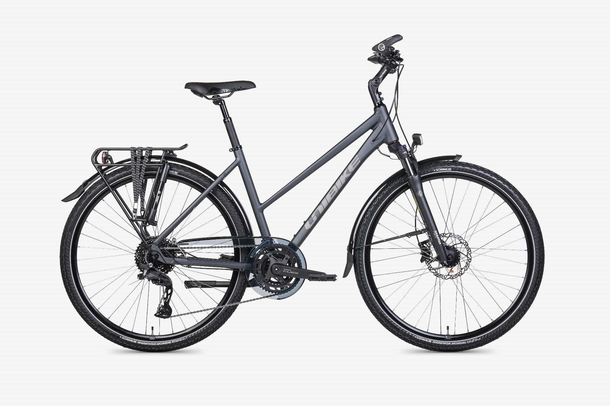 Specyfika producenta: Unibike projektuje trekkingi jako kompletne, praktyczne konstrukcje – dobiera komponenty pod trwałość i łatwy serwis, stawia na sprawdzone marki (Shimano/Schwalbe/SKS/Busch+Müller) oraz sensowne wyposażenie turystyczne. Dzięki temu Atlantis nie wymaga doposażania „na start” i jest przygotowany na kilometry od pierwszej jazdy.