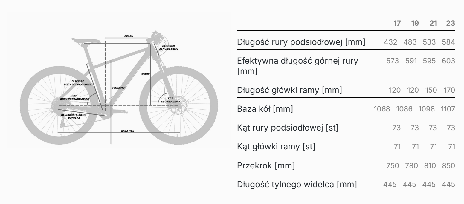 Rama ALU 6061-T6 (rozmiary: 17”, 19”, 21”, 23”) – lekka i dynamiczna w jeździe