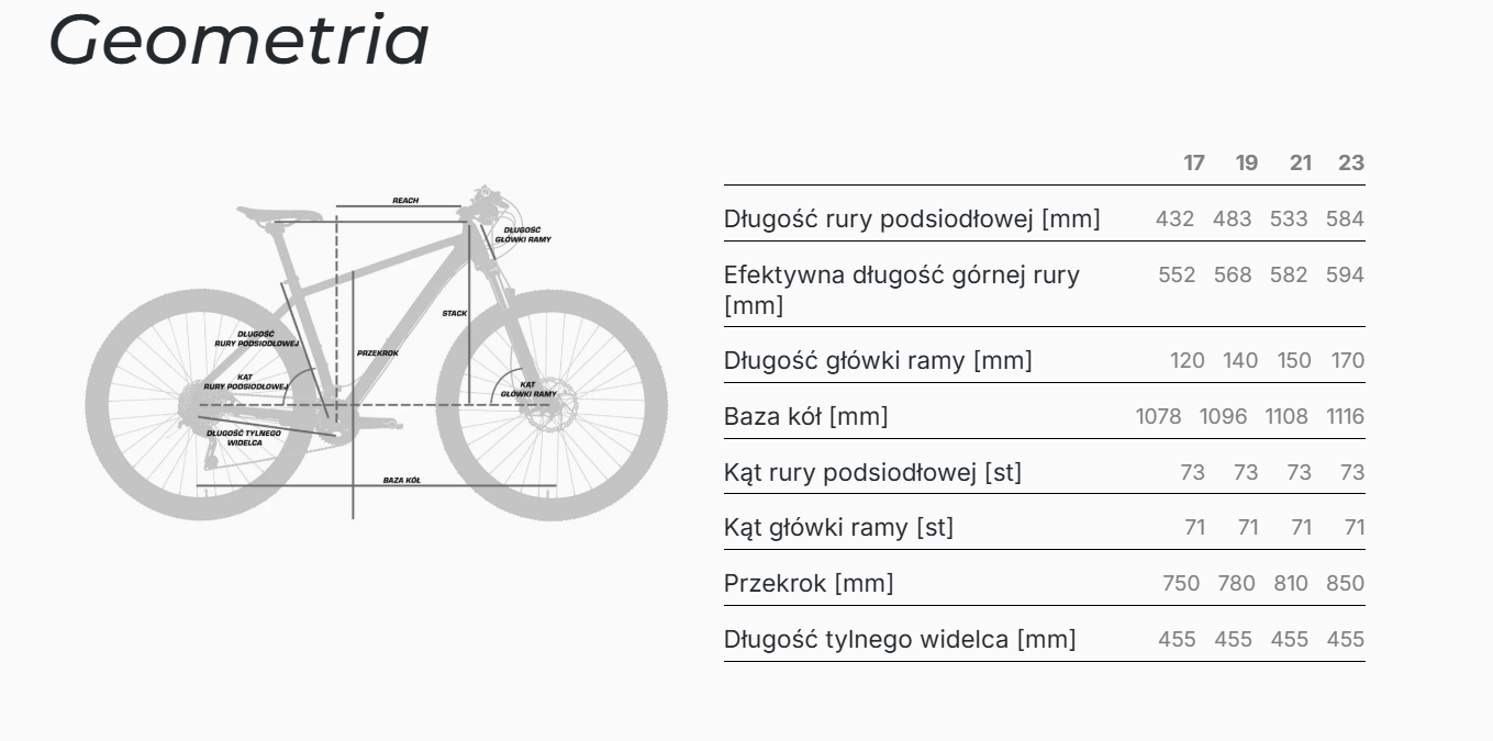 • Rama ALU 6061-T6 w rozmiarach 17”, 19”, 21”, 23” (700C) – sztywna i lekka