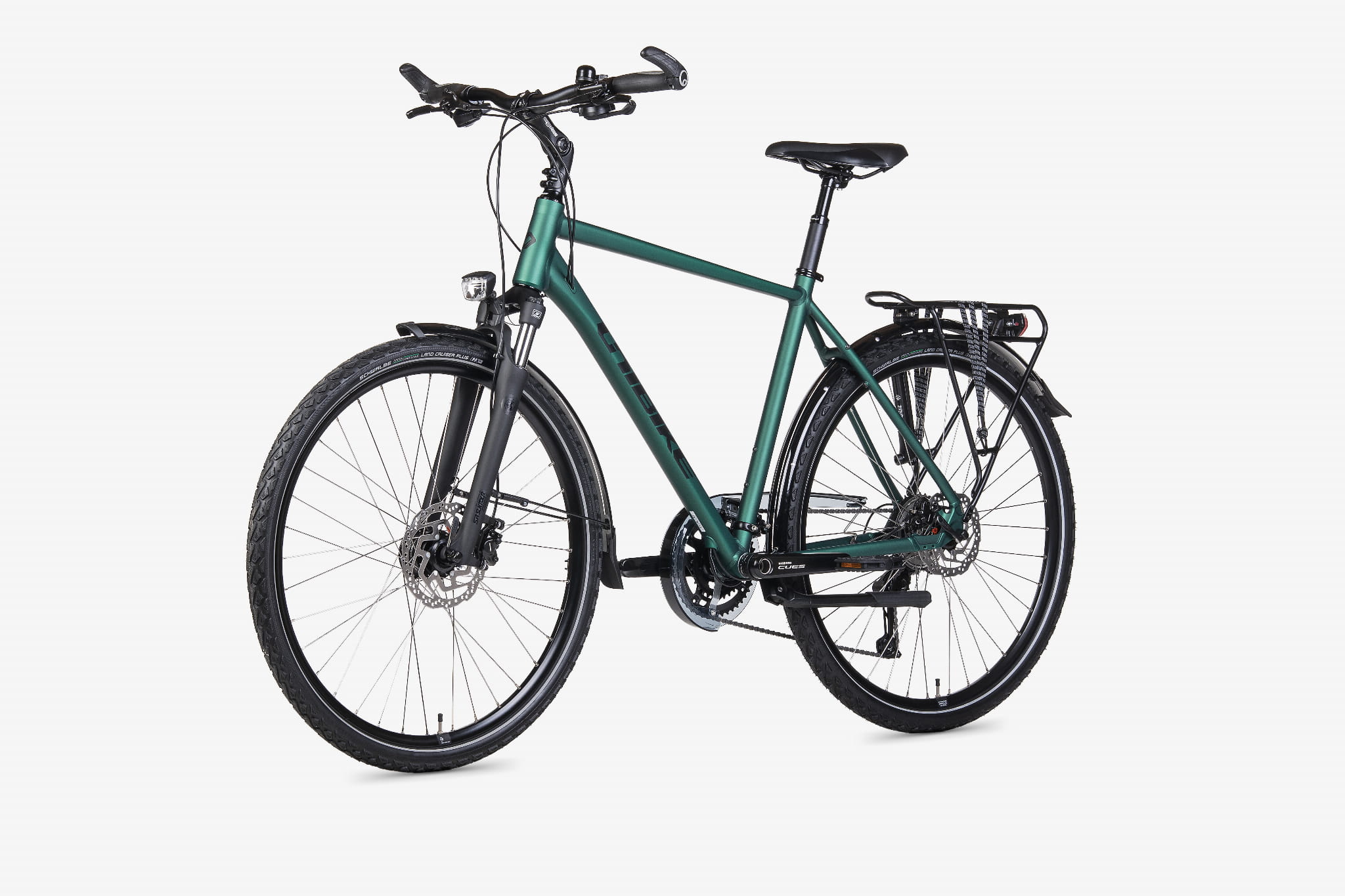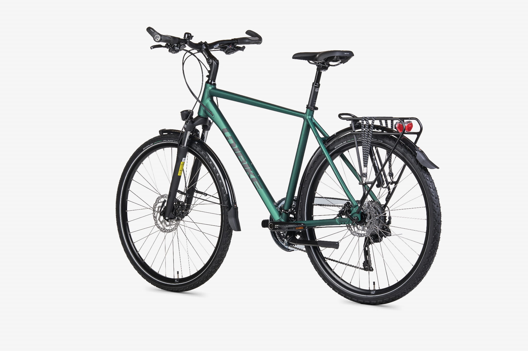 Zastosowano obręcze JHT (DISC, zakuwki), nierdzewne szprychy SAPIM Leader i solidne piasty: z przodu Shimano Nexus 3D37 (prądnica), z tyłu Shimano QC400 (36H). Wewnętrzny ster AHEAD FSA No.10 wspiera precyzję prowadzenia, a dętki Schwalbe z zaworem Clik ułatwiają obsługę.