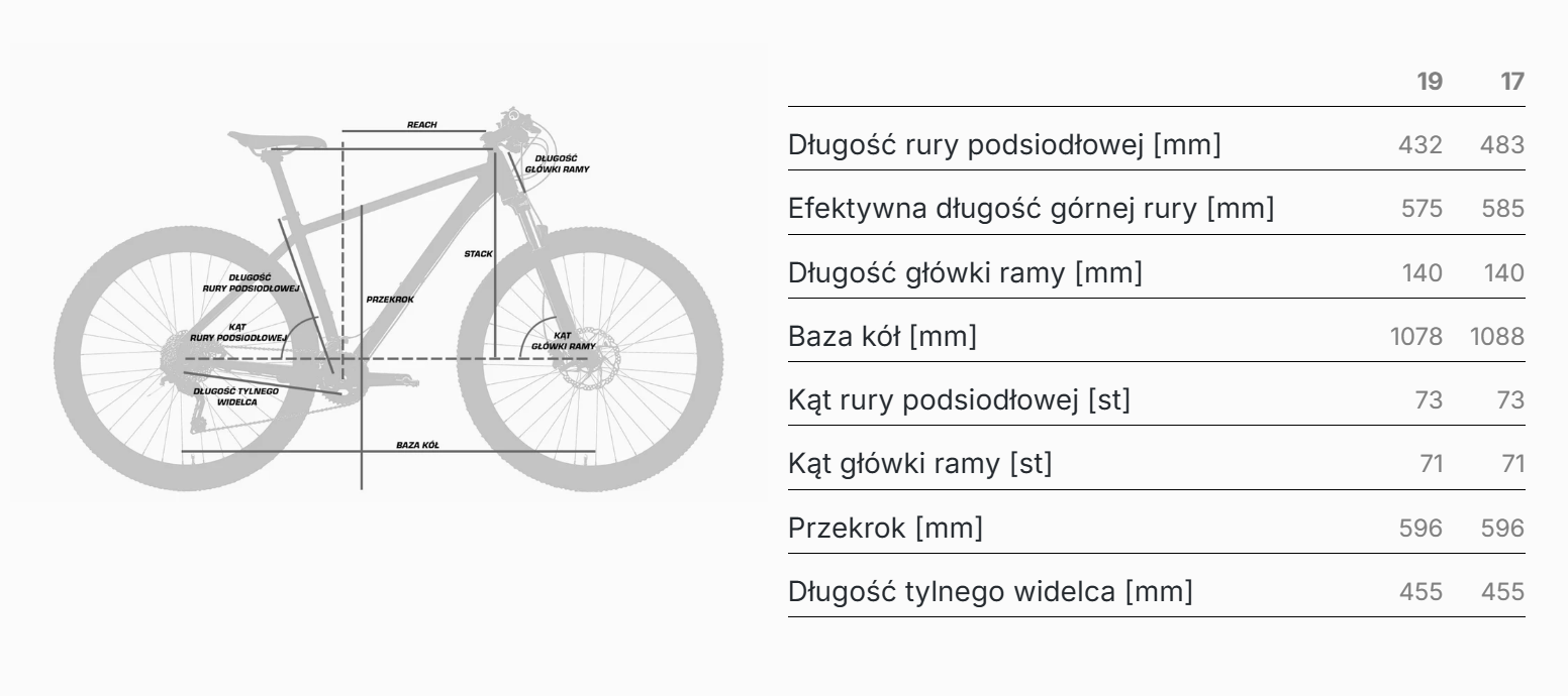 Rama ALU 6061-T6; damskie rozmiary: 17", 19"