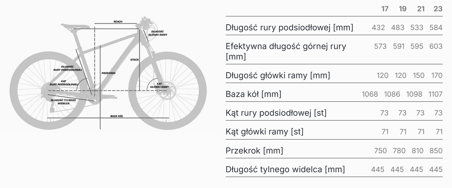 Rama ALU 6061-T6 (męska: 17”, 19”, 21”, 23”) – sprawna, dynamiczna jazda