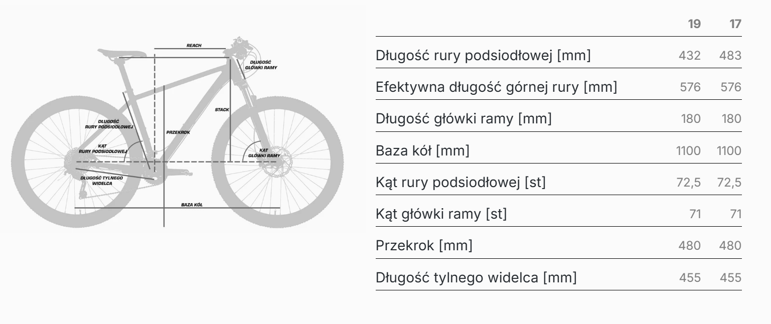 Rama ALU 6061-T6; rozmiary damskie: 17", 19"