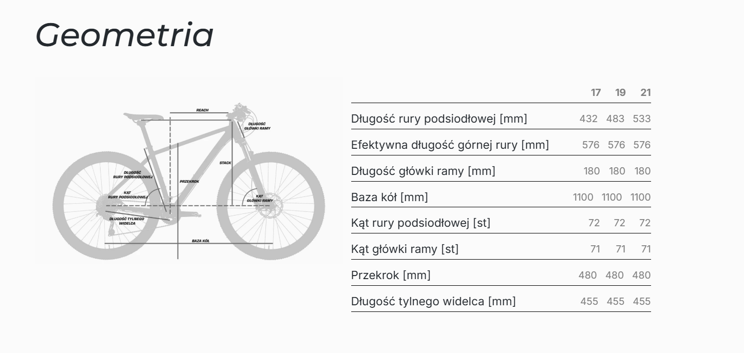 - Rama ALU 6061-T6 w trzech rozmiarach (17/19/21)